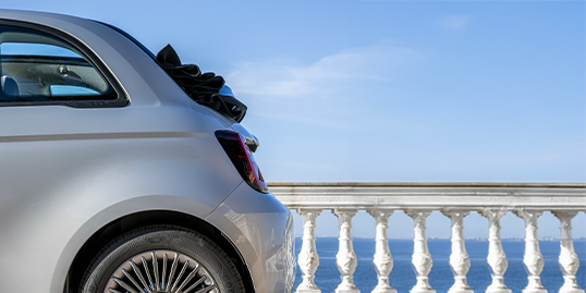 Il design della Fiat 500 Cabrio non ha bisogno di presentazioni: le sue linee arrotondate e il profilo inconfondibile si arricchiscono dell’iconica capote in tela. Basta un tocco per aprire l’auto al sole e godersi il panorama urbano o i paesaggi collinari torinesi.